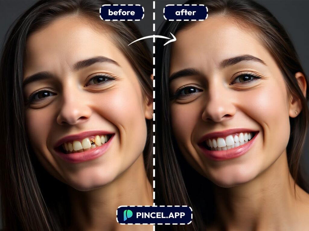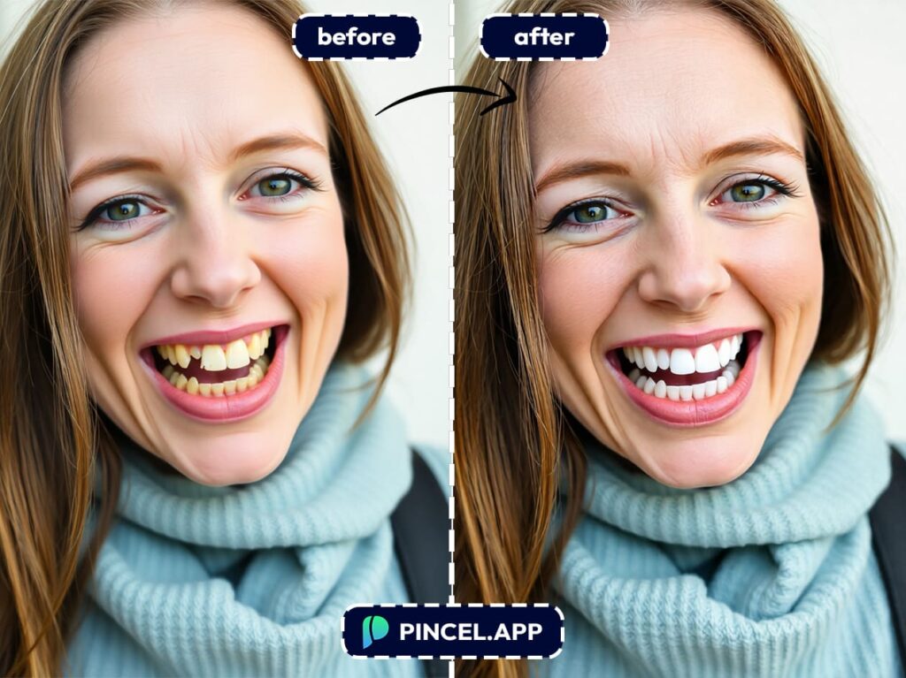 With Pincel AI Photo Editor, you can whiten, align, and fix teeth in under 10 seconds.