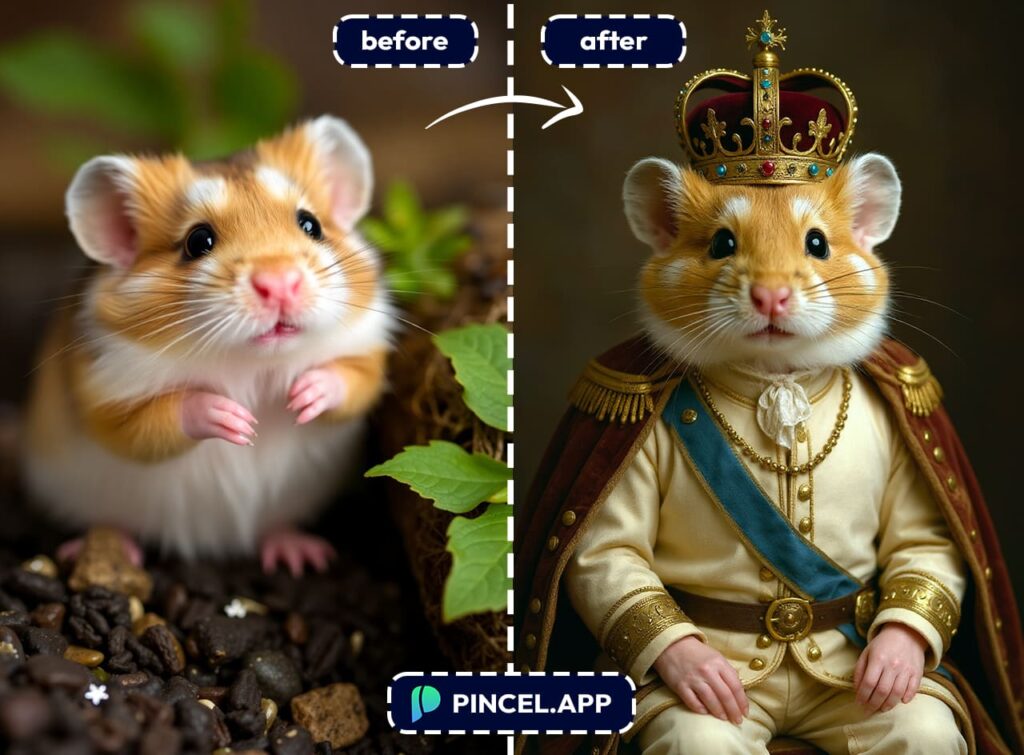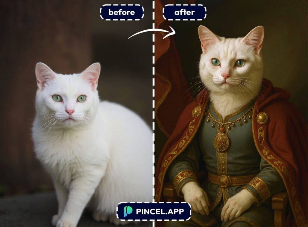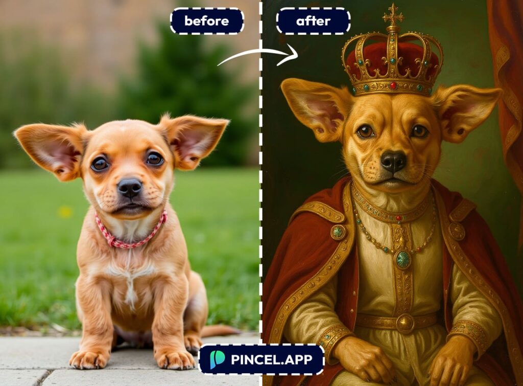 And with Pincel.app, turning your pet into royalty takes less than 6 seconds.