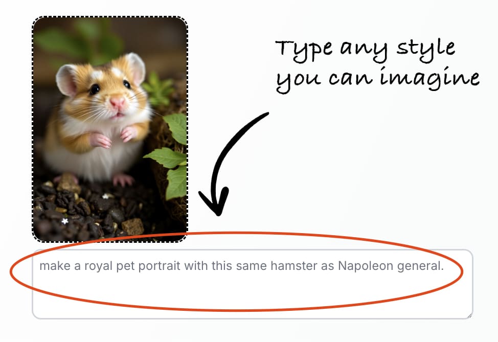 You can ask the AI to make any custom pet portrait.